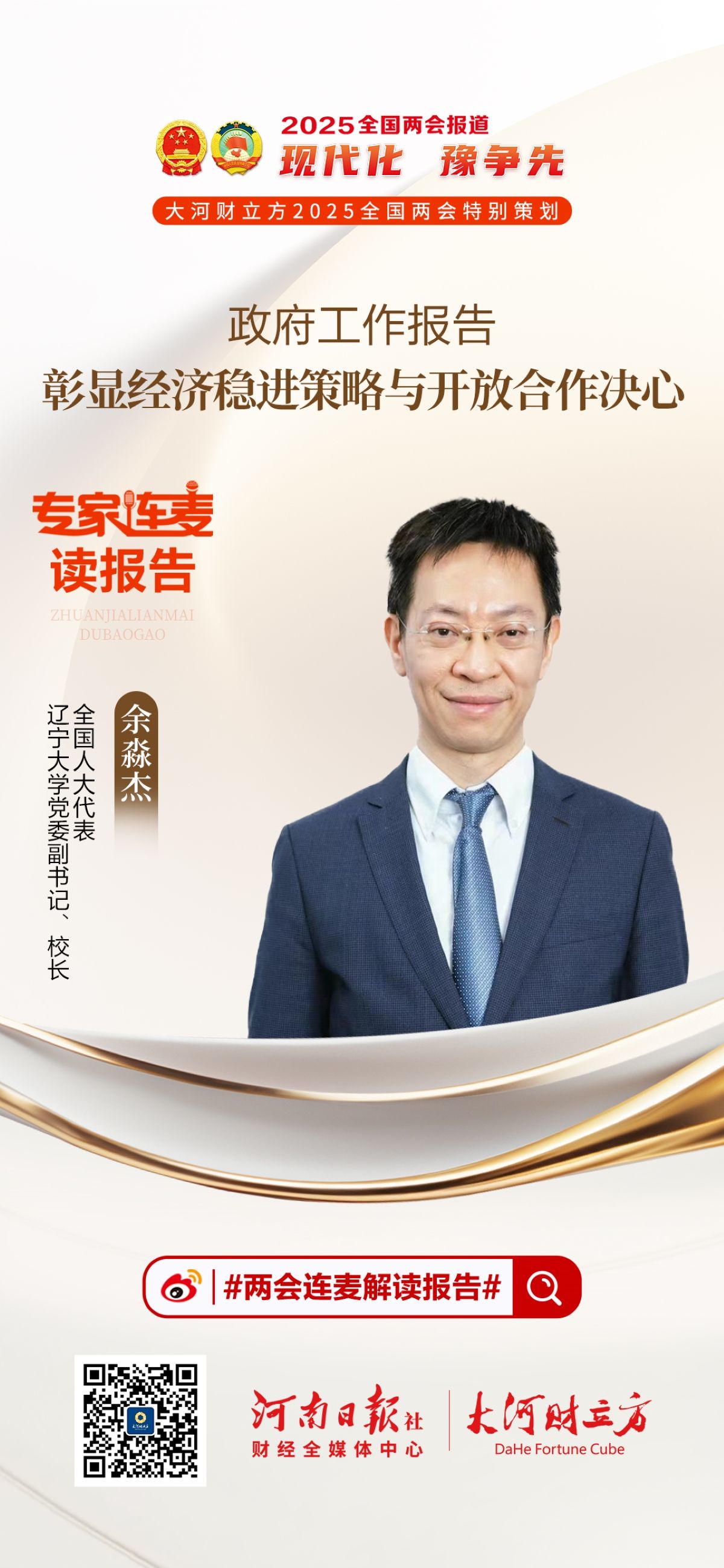 上午11时,大河财立方推出2025全国两会特别策划——专家代表微博连麦读报告,对话经济领域专家、全国人大代表,一起读懂报告里面的关键词。