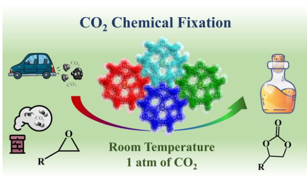 日前,化学院韩正波教授课题组在金属有机多面体领域取得新进展,相关研究成果在国际著名化学期刊Chemical Communications发表。金属有机多面体(MOPs)作为一类新型材料,因其具有灵活的拓扑结构及功能化的限域空间,在催化、分离、主客体化学等方面显示出巨大的应用前景。M体育平台·(中国)官方网站化学院韩正波教授研究团队采用4-连接Cu2(COO)4轮桨单元和3-连接半刚性羧酸配体利用溶剂热法设计合成一例具有rdo拓扑结构的MOPs材料:[Cu12(TCPT)8(H2O)6(DMF)6]·xS (Cu-MOP)。该材料具有高密度Lewis酸性Cu(II)中心,及在有限纳米空间中存在富氮配体,故Cu-MOP具有高度选择性吸附CO2的能力,兼具有良好的化学稳定性和热稳定性,可选作非均相催化剂在环境条件下将CO2化学固定为环状碳酸酯,并展示出了优异的催化性能。这项研究论证了MOPs在CO2分离及催化转化领域的潜在应用。