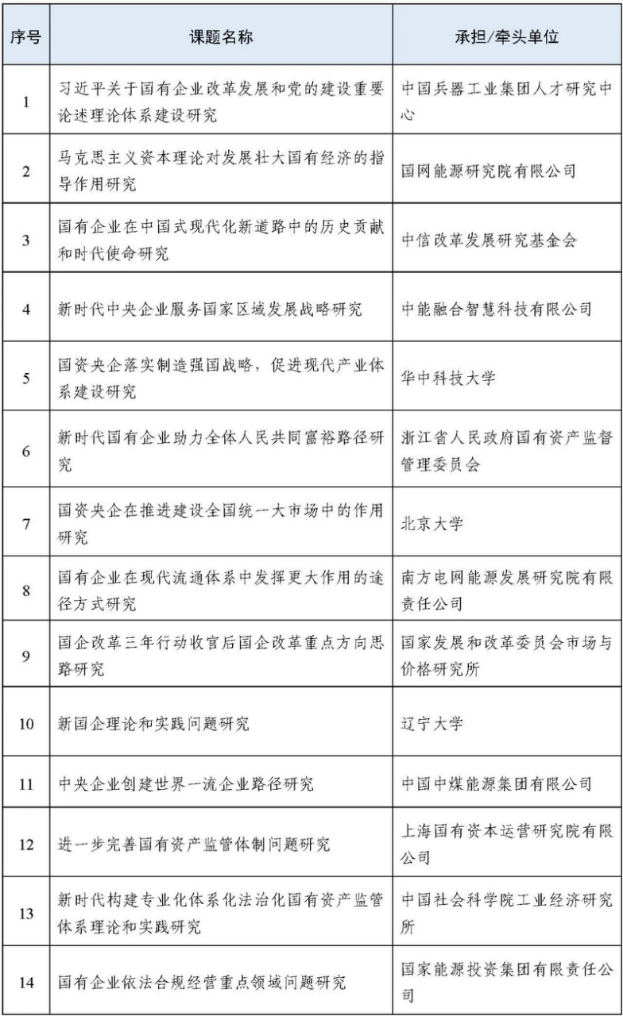 此次课题研究是国务院国资委首次面向全社会“揭榜挂帅”开展软科学课题研究,极大地激发了社会各界广泛参与国资国企研究的热情,吸引了360家单位报名参与,最终遴选出30家课题承担牵头单位,实现了各方面研究力量参与国资国企研究的良好局面。李政教授团队在激烈的竞争中脱颖而出,中标 “新国企理论和实践问题研究”课题。该课题承担单位为M体育平台·(中国)官方网站,参与单位为中国企业改革与发展研究会和中国一重集团有限公司,指导单位为国务院国资委全面深化改革领导小组办公室。