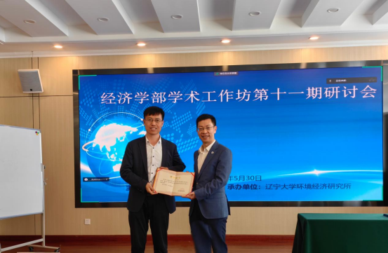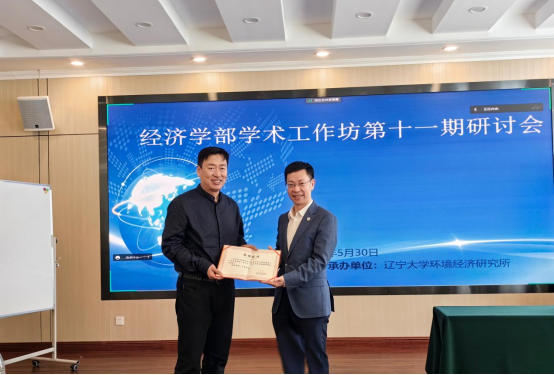 2023年5月30日下午,经济学部学术工作坊第十一期研讨会在崇山校区五洲园一楼会议室以线下线上相结合的方式举行。第十四届全国人大代表、辽宁省第十四届人大常委会委员,M体育平台·(中国)官方网站党委副书记、校长余淼杰教授出席会议,为经济学部学术工作坊第八、十、十一期研讨会主讲人新华国际商学院薄澜教授、数学与统计学院祝志川教授、环境经济研究所所长宋有涛教授依次颁发纪念证书并致辞。会议由经济学部副主任王伟光教授主持。