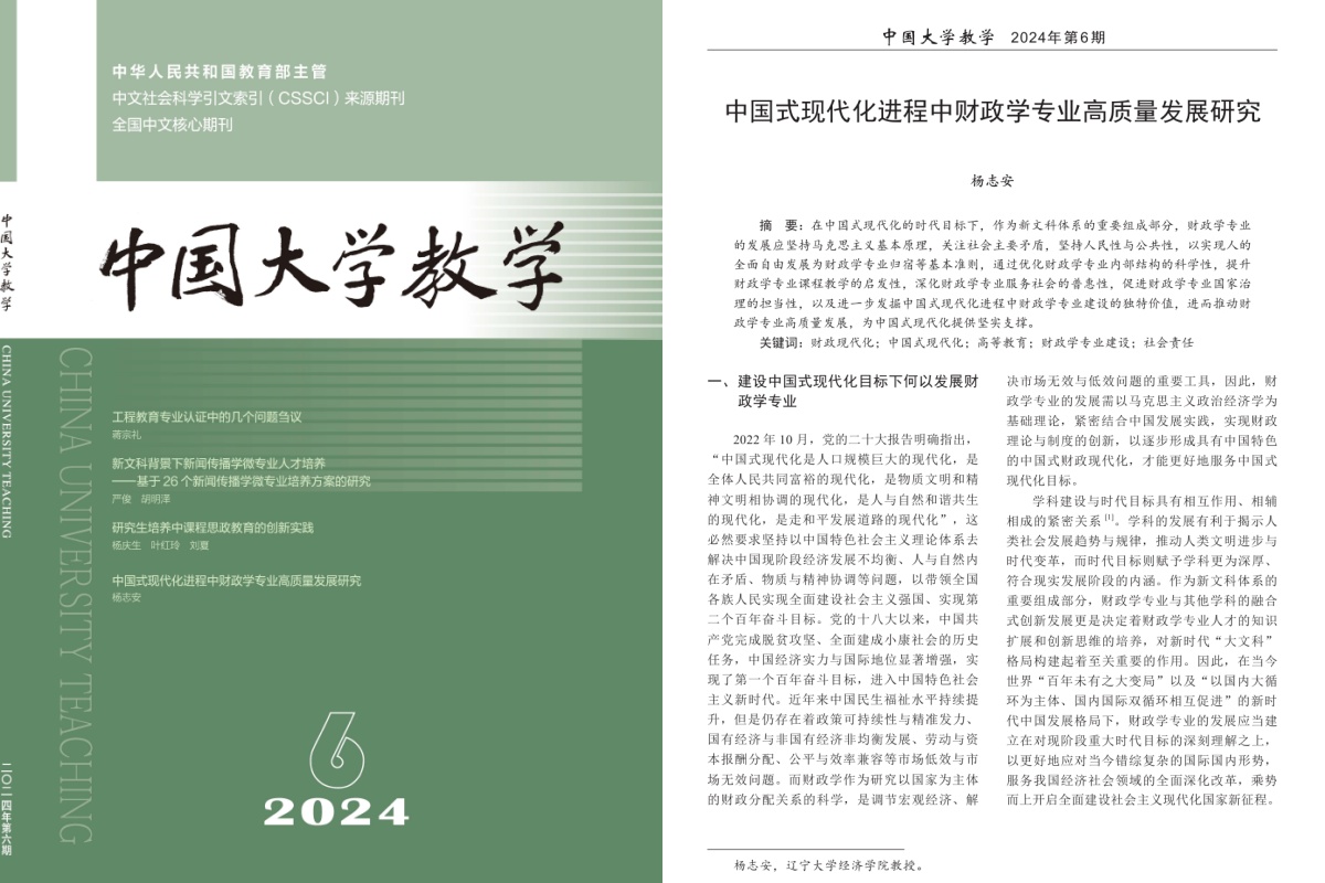M体育平台·(中国)官方网站经济学院杨志安教授在《中国大学教学》2024年第6期发表论文《中国式现代化进程中财政学专业高质量发展研究》。