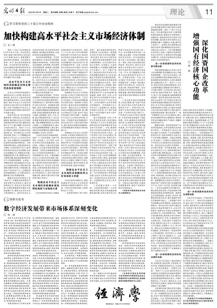 2024年8月6日,经济学院李政教授在《光明日报》第11版发表理论文章《深化国资国企改革 增强国有经济核心功能》。
