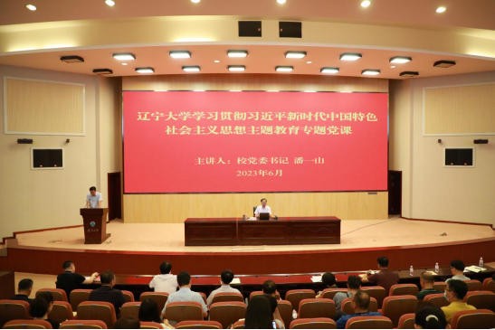 按照省委主题教育部署要求和学校党委工作安排,6月25日,校党委书记潘一山以《以社会现实场景真实问题为主轴,“走出去、走进去、走上去”,实现人才培养M体育平台·(中国)官方网站社会服务一体化》为题,在蒲河校区校部办公楼蔡冠深学术报告厅,为学校处级干部、基层党支部书记、专职组织员、学生党员代表讲授专题党课。省委第十七巡回指导组成员、沈阳航空航天大学总务部副主任赵元到场指导。