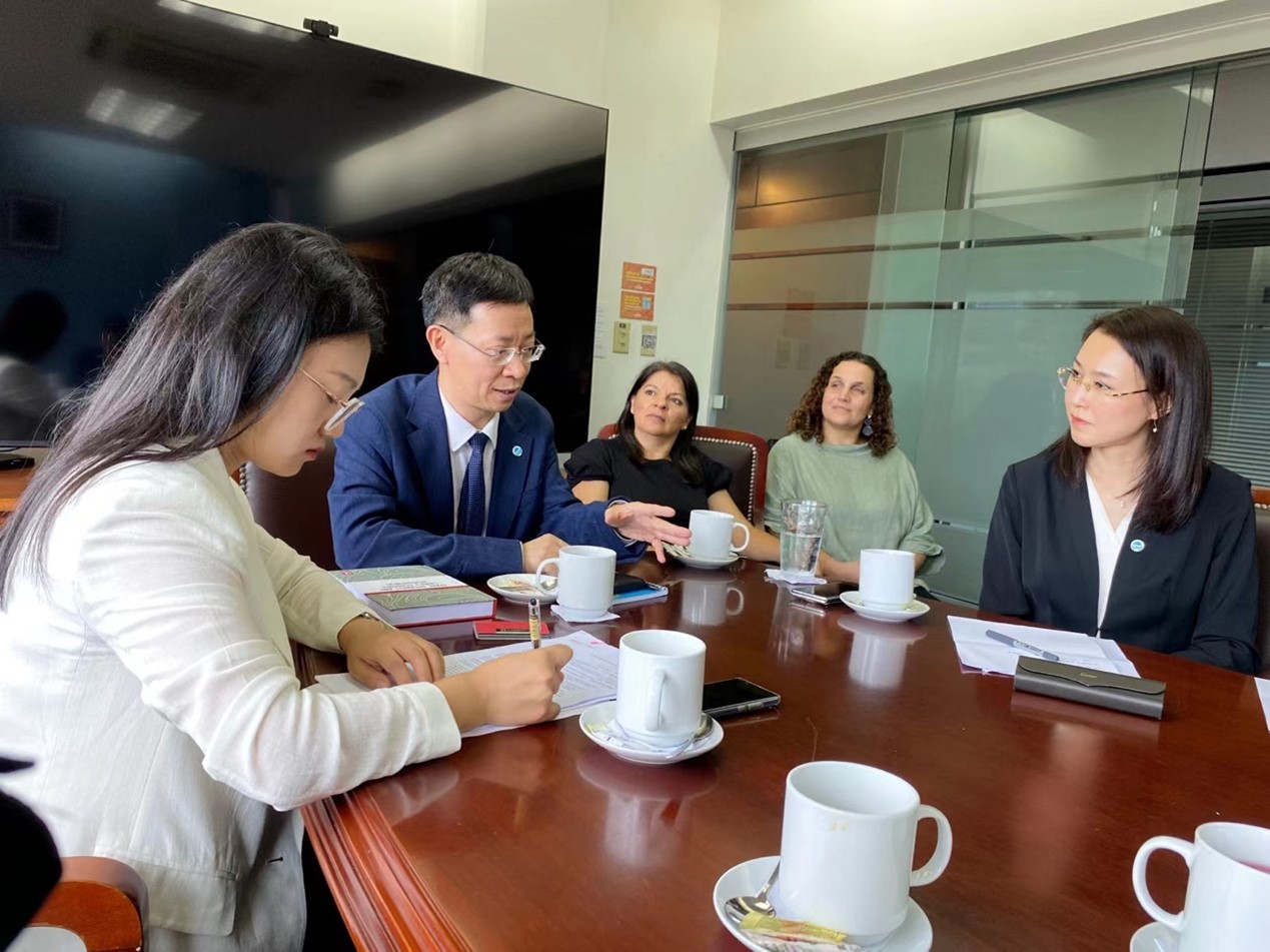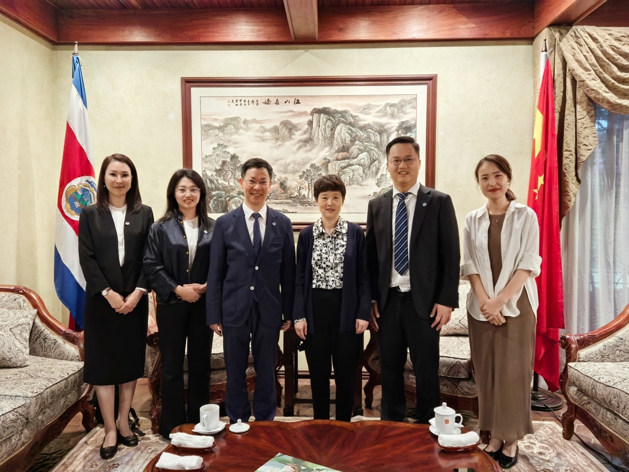 当地时间7月30日,余淼杰一行拜会了中华人民共和国驻哥斯达黎加大使馆,受到驻哥斯达黎加大使王晓瑶、政治处主任刘琬的热情会见。